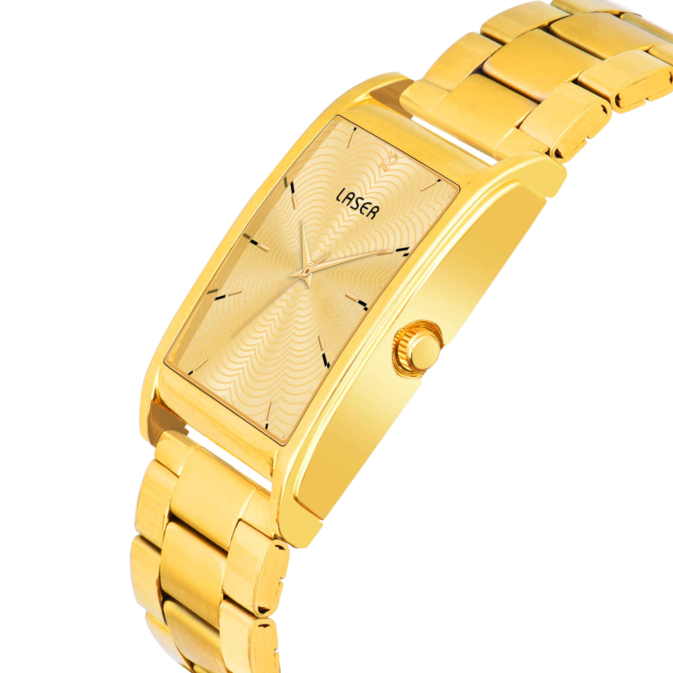 Make a bold statement with the LASER men’s watch, designed for those who appreciate elegance and precision. This stunning timepiece features a golden square-shaped case, a matching golden dial, and a sleek golden metal chain, exuding luxury and sophistication. Powered by a Japan quartz movement, it ensures accurate and reliable timekeeping, making it a perfect companion for any occasion.