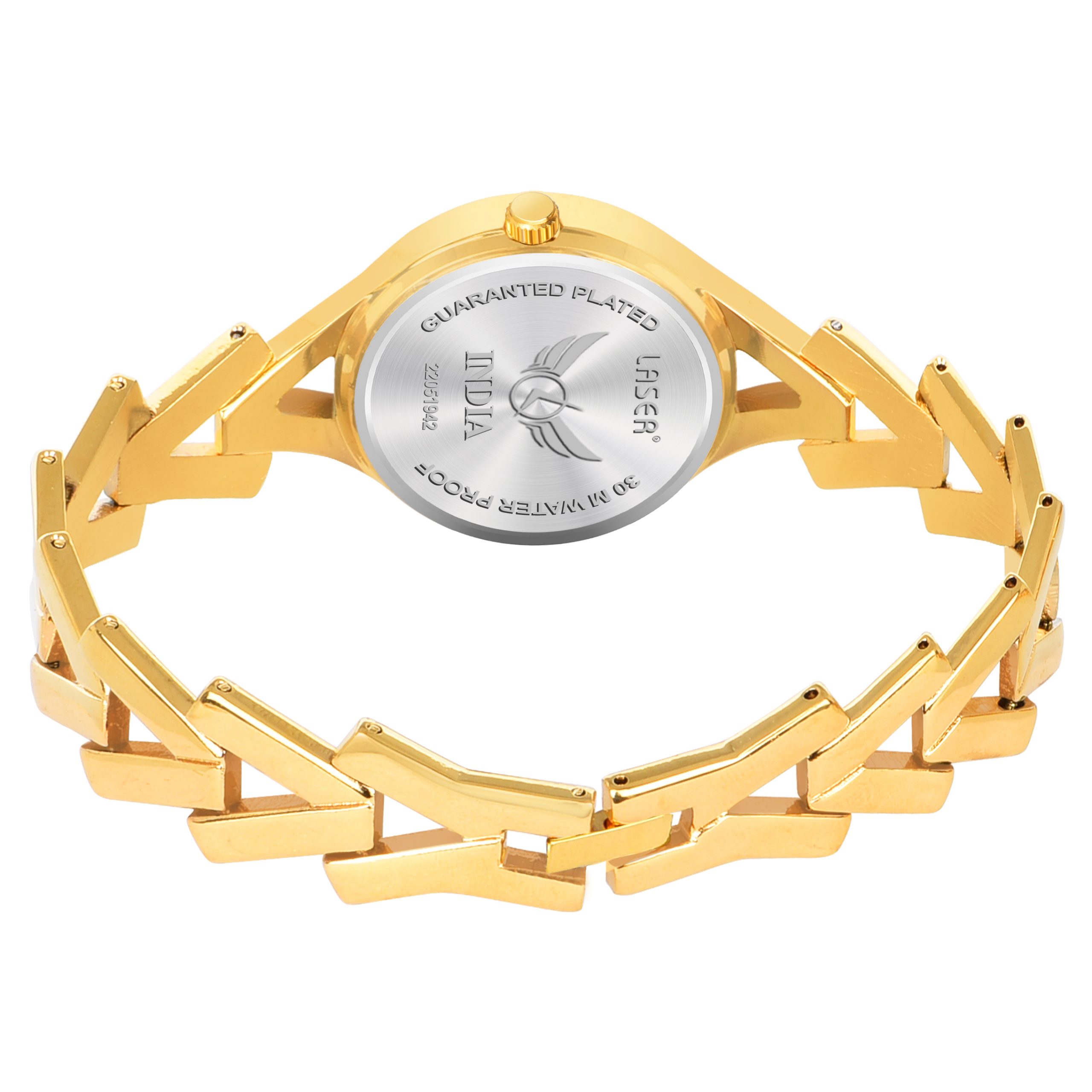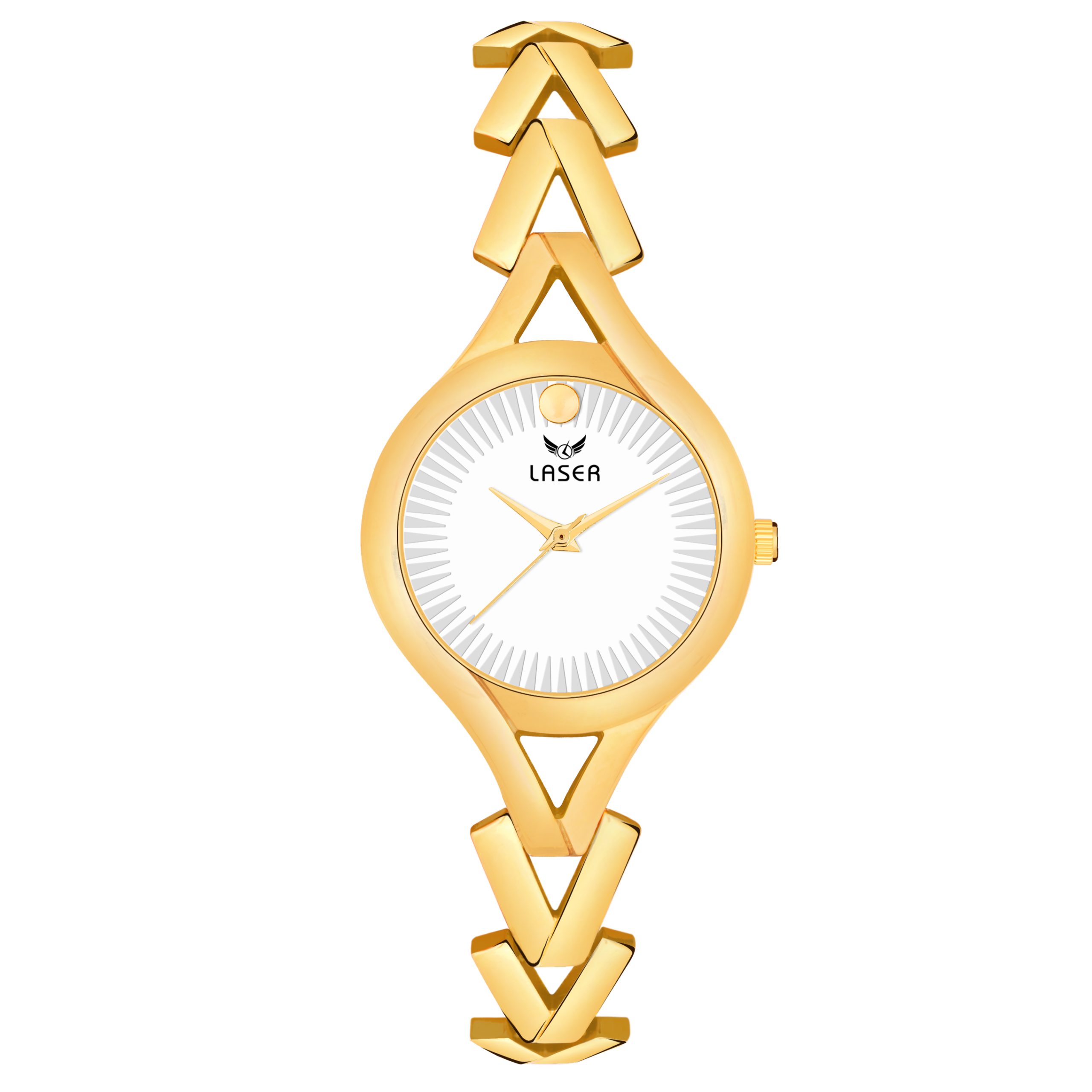 This Laser Ladies Watch features a striking golden case that enhances its elegant design. The golden bracelet-style chain adds a sophisticated touch, ensuring the watch is both stylish and comfortable to wear. It boasts a sleek White dial, offering a high-contrast and refined look, making it perfect for both casual and formal occasions. Powered by a Japan quartz movement, this timepiece guarantees precise timekeeping and reliability. The combination of quality craftsmanship and luxurious materials makes it an ideal accessory for women who appreciate elegance and functionality.